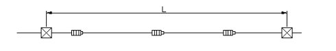 如圖所示,安裝一次性補(bǔ)償器的管段應(yīng)與其他管段用固定墩隔開,以確保吸收定長管道預(yù)熱伸長量。為確保其精確,可在預(yù)熱前計(jì)算定長管道理論伸長量,然后在各一次性補(bǔ)償器上作出標(biāo)記,使各個一次性補(bǔ)償器壓縮量之和等于定長管道的計(jì)算伸長量,待預(yù)熱伸長到位時,將補(bǔ)償器二次焊口焊接固定。管道在運(yùn)行中不再有伸縮運(yùn)動,其溫度變化引起的管道長度伸縮將轉(zhuǎn)化為管道的內(nèi)應(yīng)力。