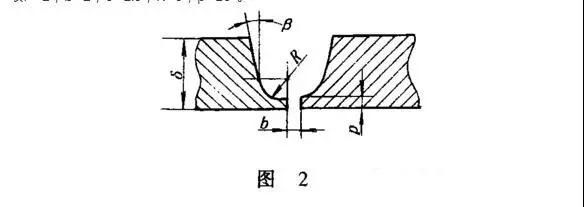 式中e——坡口兩邊焊縫覆蓋寬度,一般取e=1.5~2mm。