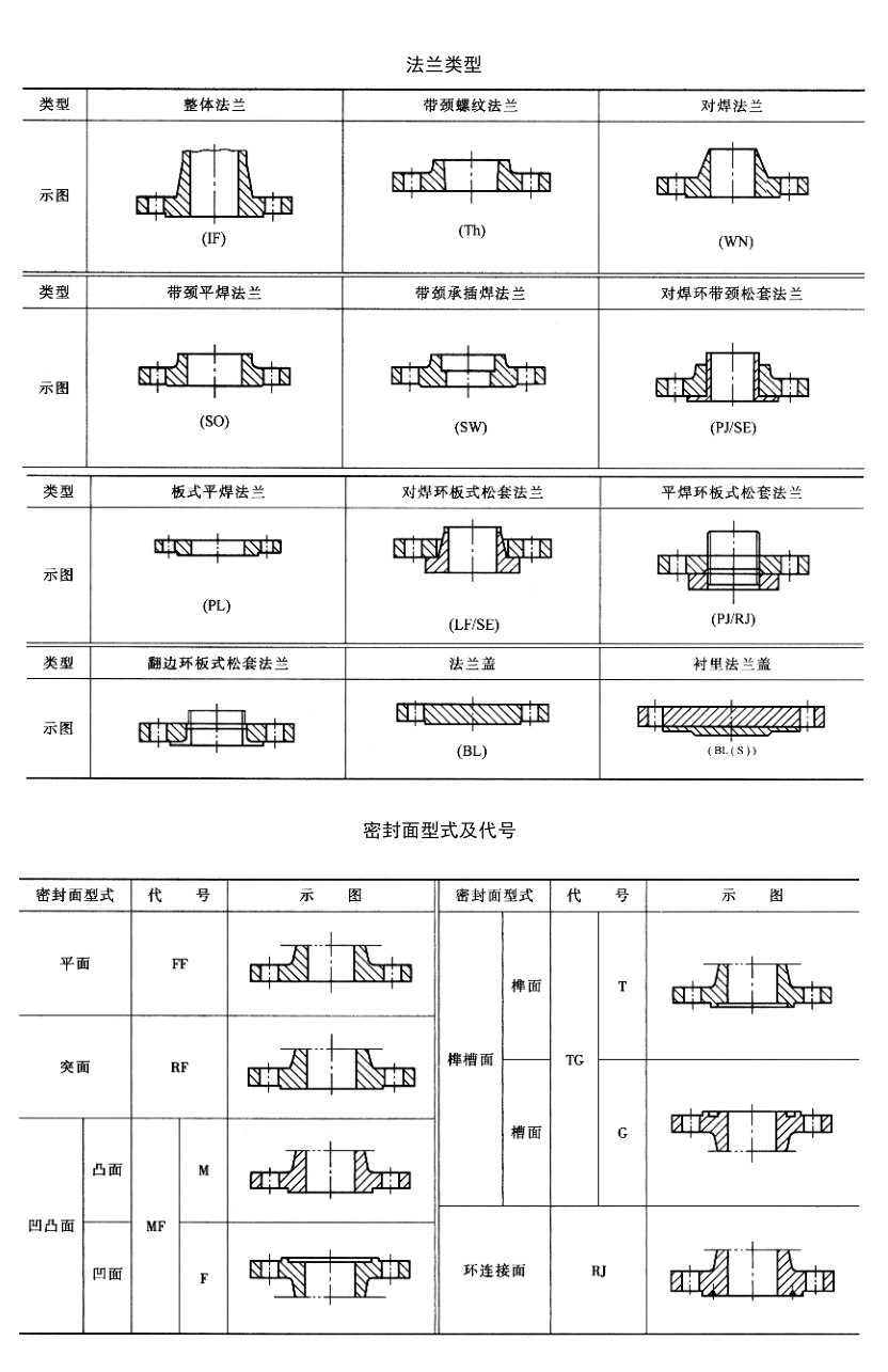 GB/T 9112 ~ GB/T 9124-2000 鋼制管法蘭,整體鋼制管法蘭的法蘭密封面形式有平面、突面、凹凸面、榫槽面和環(huán)連接面。