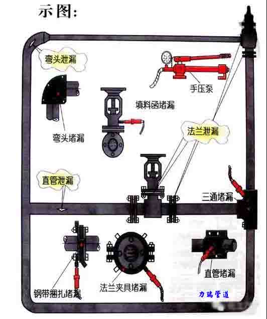 2、改道法。在管道或設(shè)備上用接管機(jī)帶壓接出一段新管線代替泄漏的、腐蝕嚴(yán)重的、堵塞的舊管線,這種方法稱為改道法。此法多用于低壓管道。