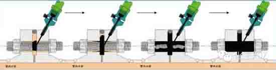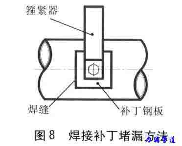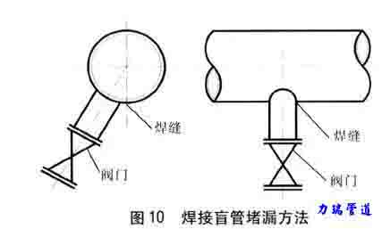 5、逆焊法。利用焊縫收縮的原理,將泄漏裂縫分段逆向逐一焊補(bǔ),使其裂縫收縮不漏有利焊道形成的堵漏方法,簡(jiǎn)稱逆焊法,也叫做分段逆向焊法。這種方法適用于低中壓管道的堵漏。