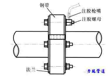利用膠粘劑直接或間接堵住管道上泄漏處的方法。這種方法適用于不宜動(dòng)火以及其他方法難以堵漏的部位。隔熱管托膠粘劑堵漏的溫度和壓力與它的性能、填料及固定形式等因素有關(guān),一般耐溫性能較差。